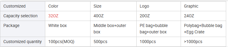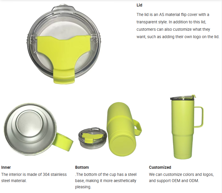 Dieser Becher mit Edelstahlgriff kann farblich individuell gestaltet werden. Der Herstellungsprozess umfasst Lackieren, Lasern usw. Wir können die gewünschte Farbe nach Ihren Wünschen anpassen. Darüber hinaus bieten wir auch weitere individuelle Dienstleistungen wie Logos an.